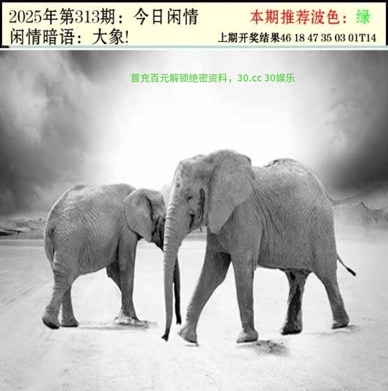 | 313期:今日闲情暗语:【大象】 解:图中是两只灰白色大象,解大数特码25-49,解白肖鼠牛虎鸡狗猪 送:鸡猪羊兔猴龙 |