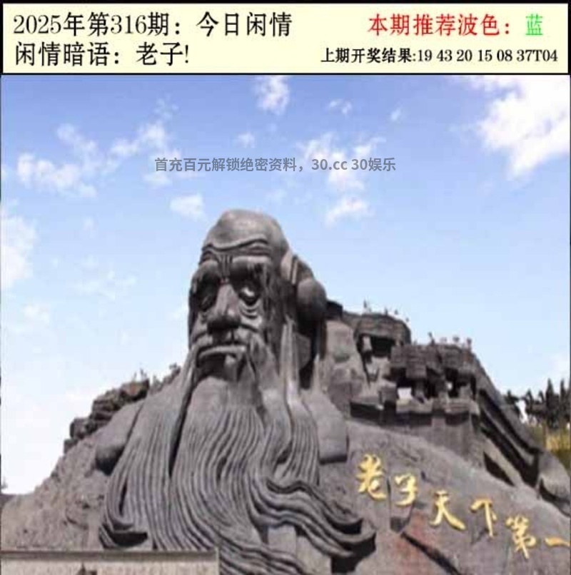 | 316期:今日闲情暗语:【老子】 解:图中是一座大石像,解地肖蛇羊鸡狗鼠虎 送:马兔鼠狗羊鸡 |